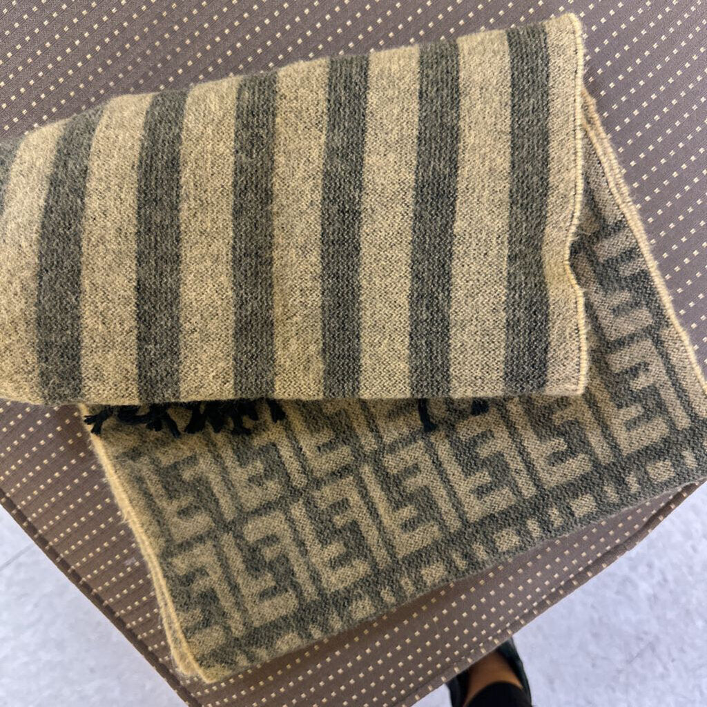 Vintage 90's Fendi FF wool scarf in brown and black with fringe ends.