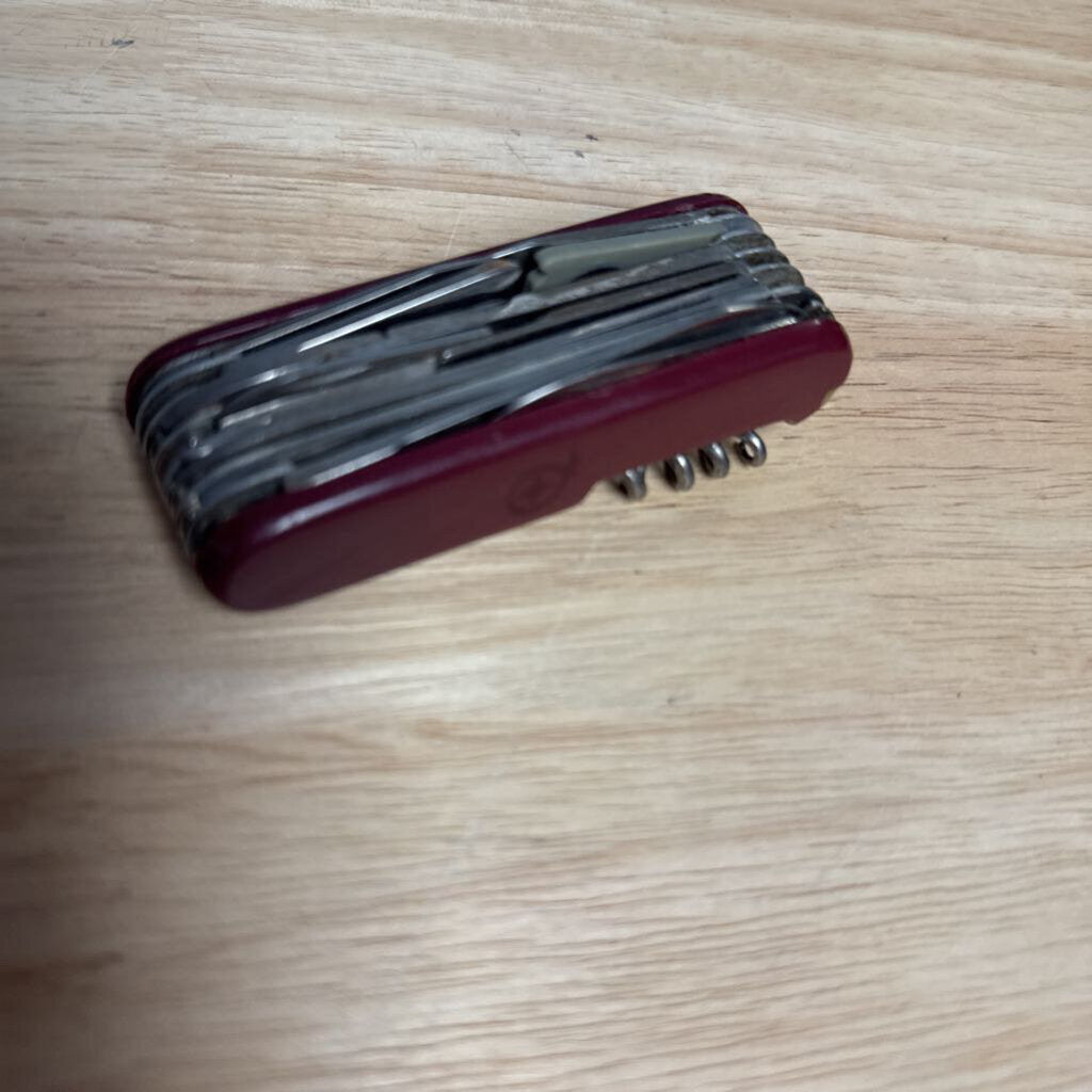 vintage; no label; multi tool and pocket knife; MANY tools; signs of aging and a little rust