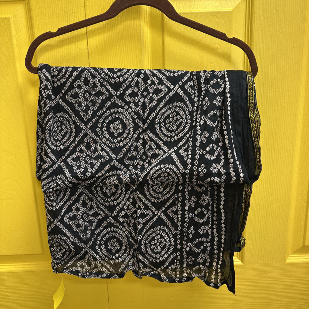 No label found Scarf 46" x 38" Black/cream/gold