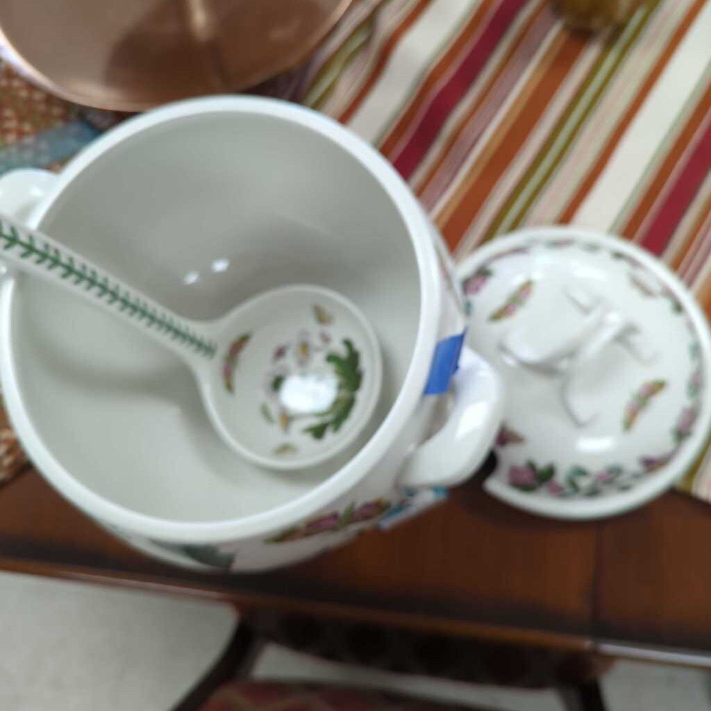 Portmeirion Soup Tureen with lid and ladle 9" dia white multi