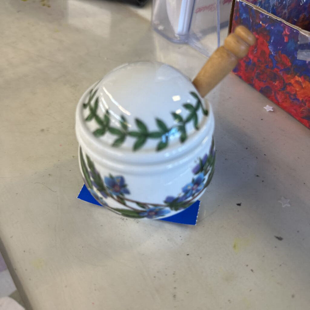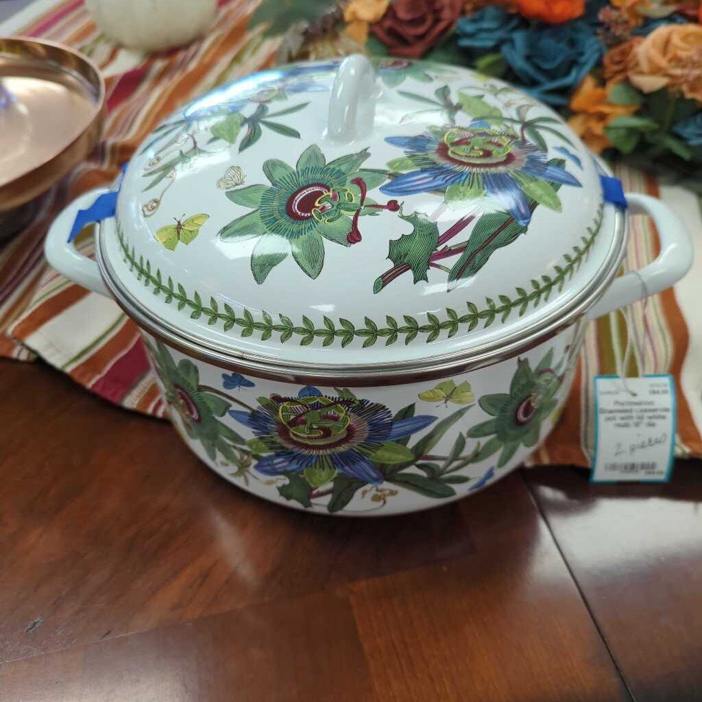 Portmeirion Enameled casserole pot with lid 10" dia white multi