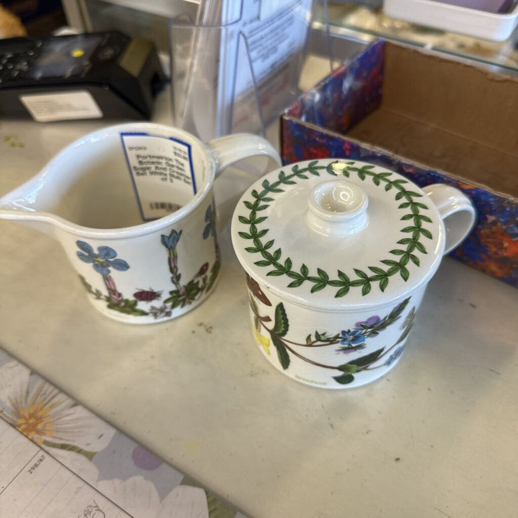 Portmeirion The Botanic Garden Sugar And Creamer Set Set of 3 White Multi