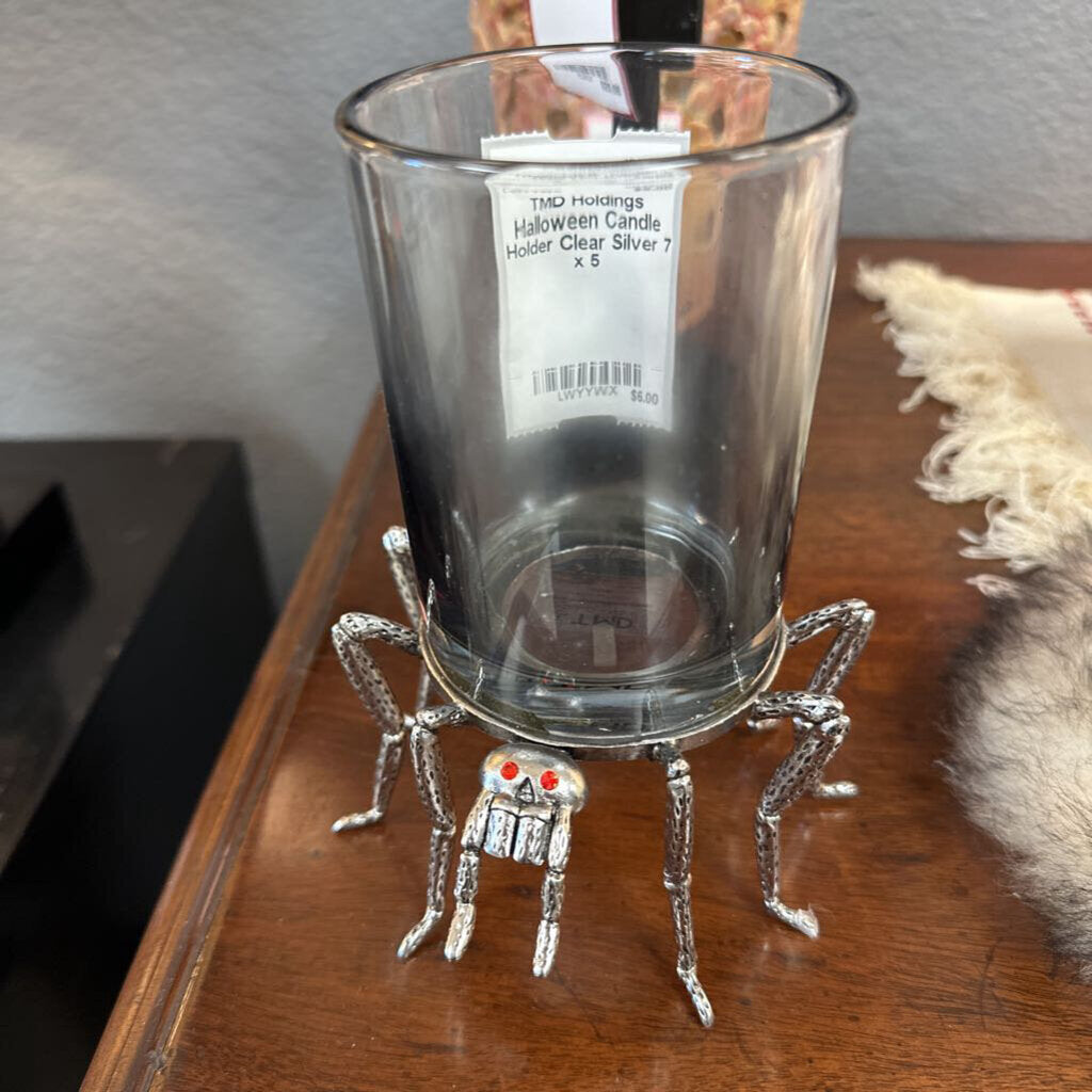 TMD Holdings Halloween Candle Holder 7 x 5 Clear Silver