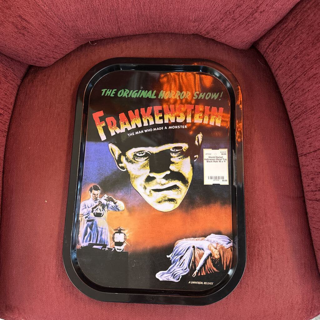 World Market Halloween Metal Tray 16 x 11 Black Multi