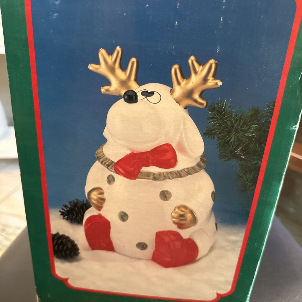 World Bazaars Reindeer storage Jar White multi