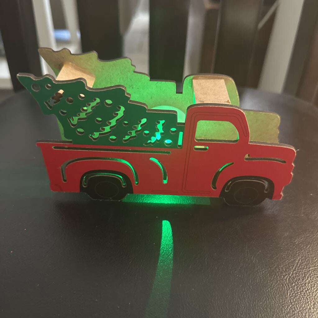 Wood tea light truck 7” x 3” Red multi