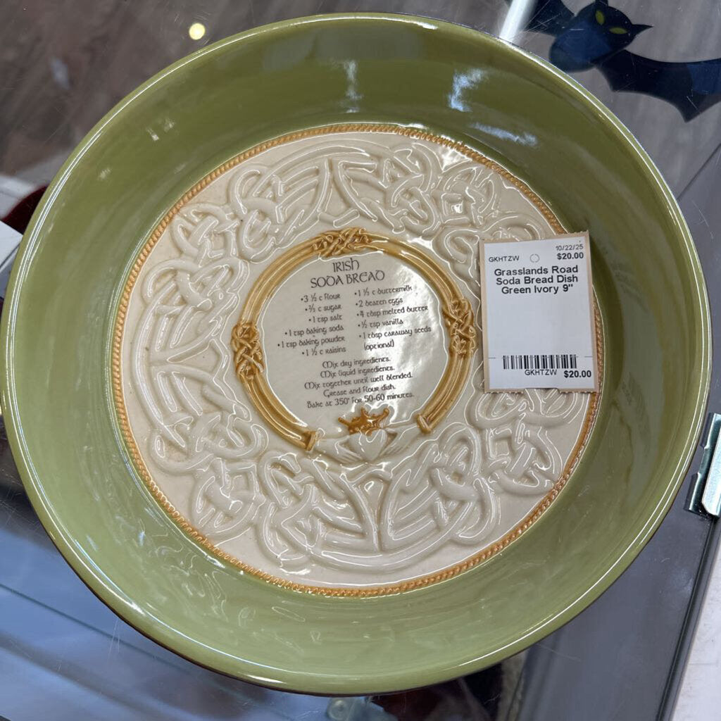 Grasslands Road Soda Bread Dish 9" Green Ivory