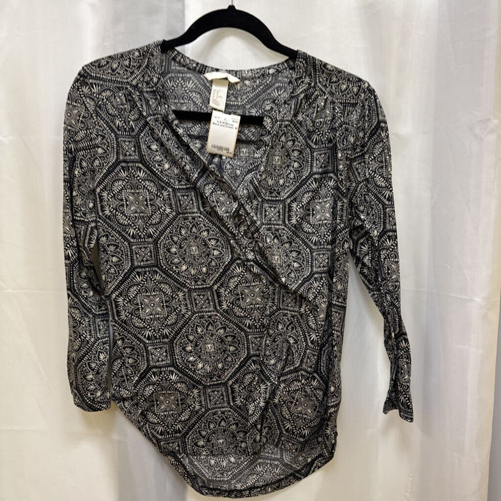 H & M Blouse M Black and Cream