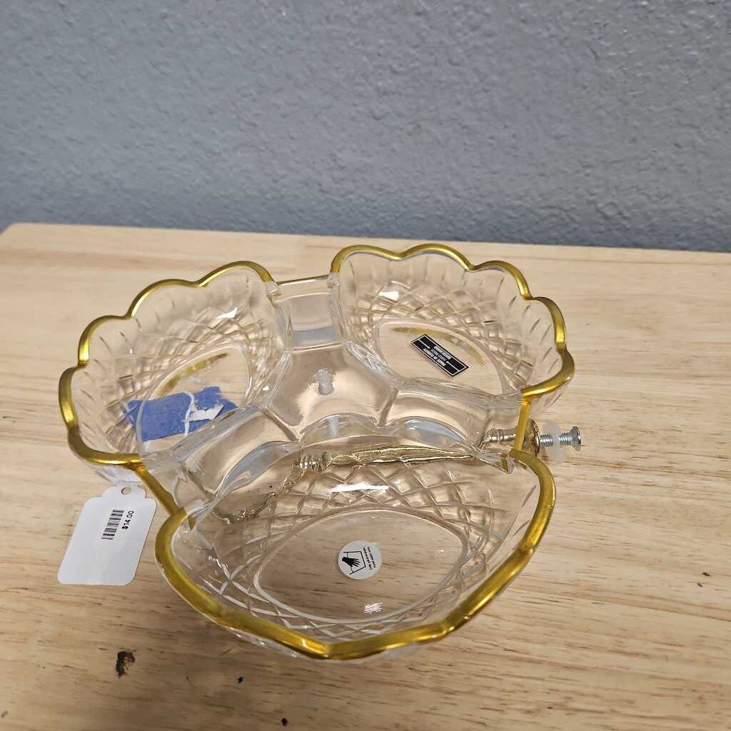 Handmade in Turkey Relish Dish 7"D gold leaf/clear