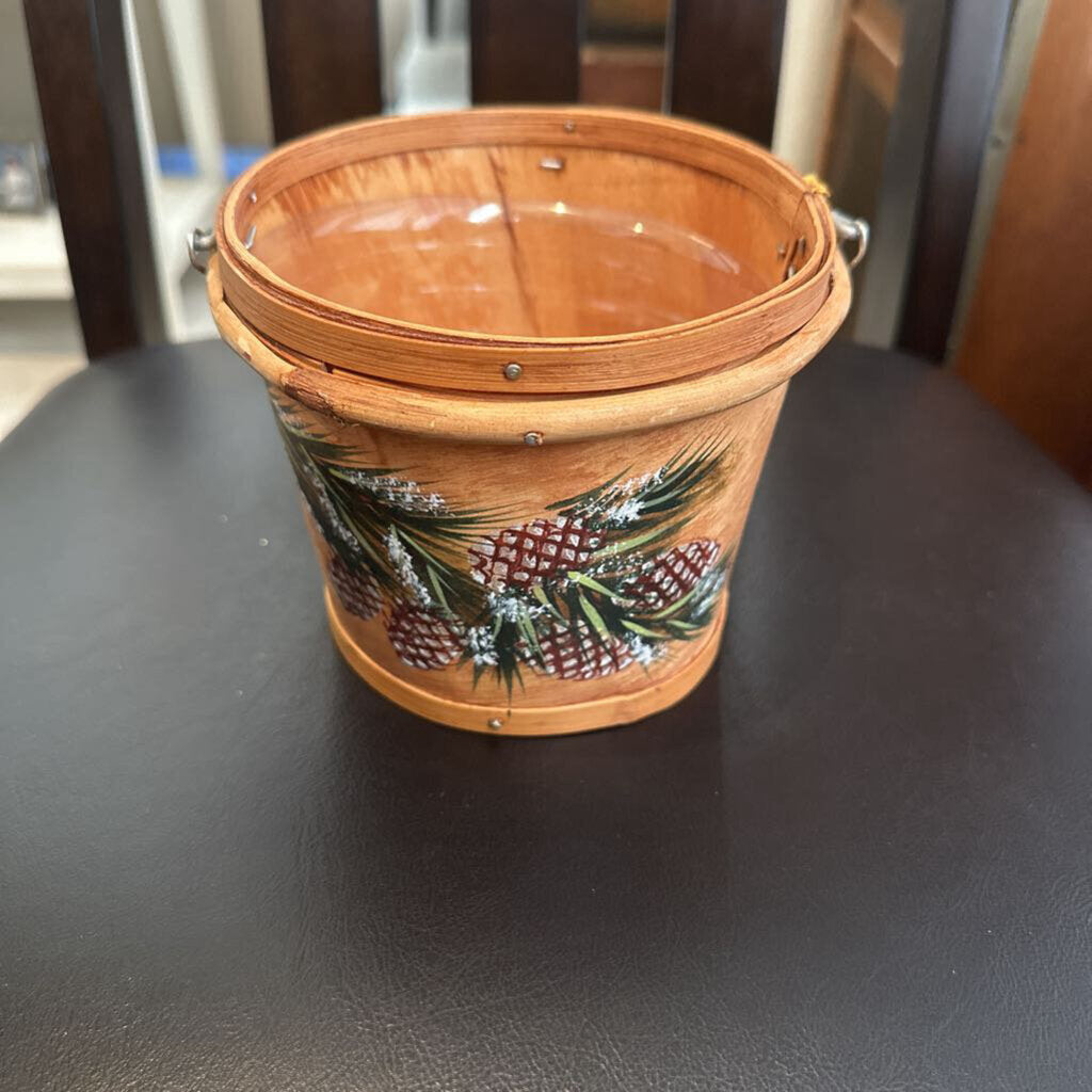 Hand painted bucket 5”d Brown multi