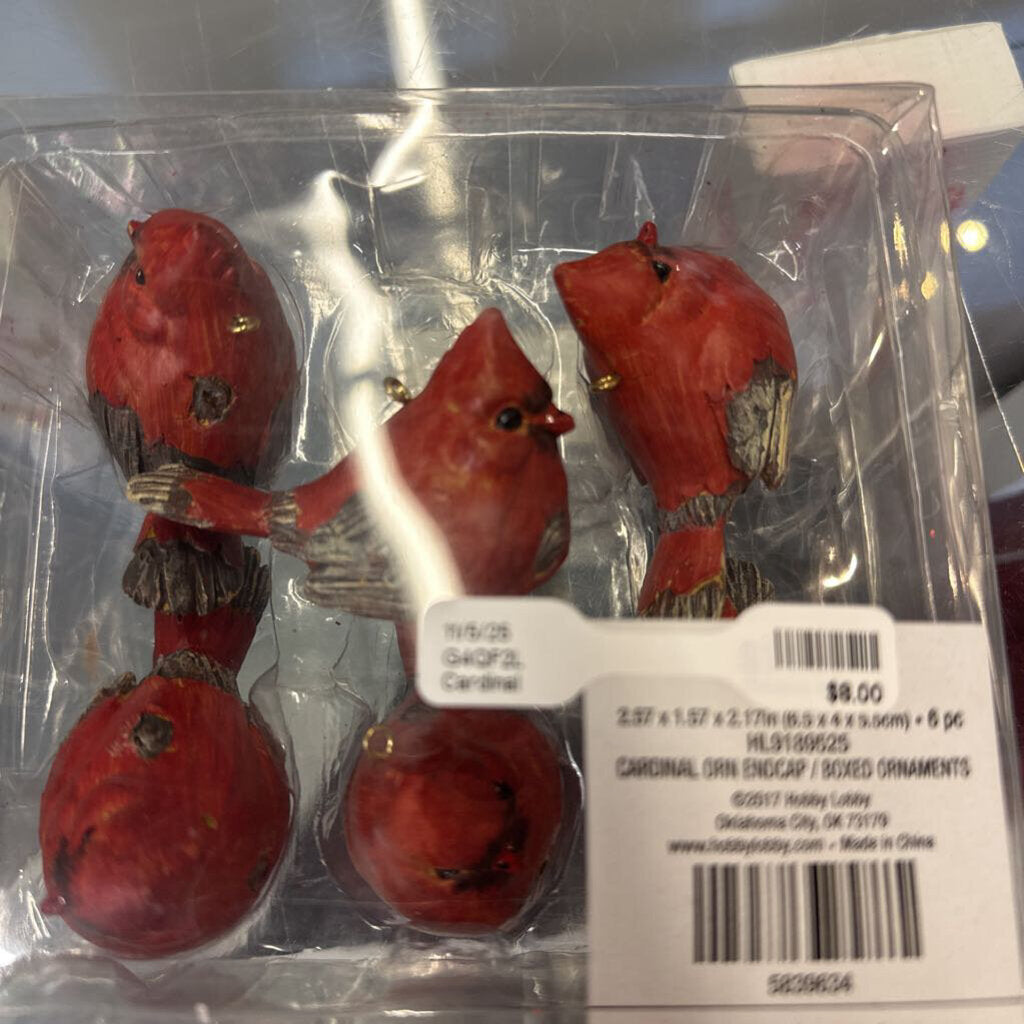 Hobby Lobby Cardinal ornaments 6 pc Red