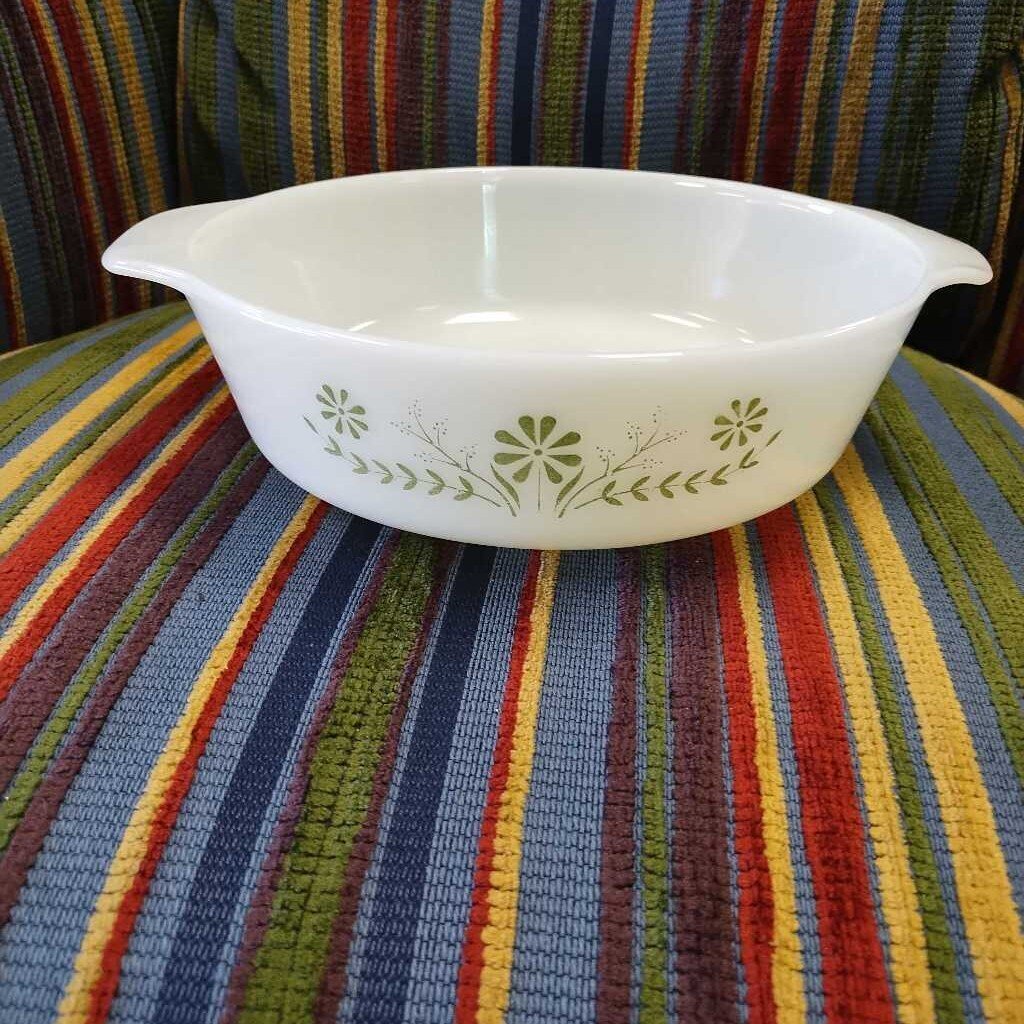 Jeannette glass Casserole Dish 11 x 9 x 3 White Green