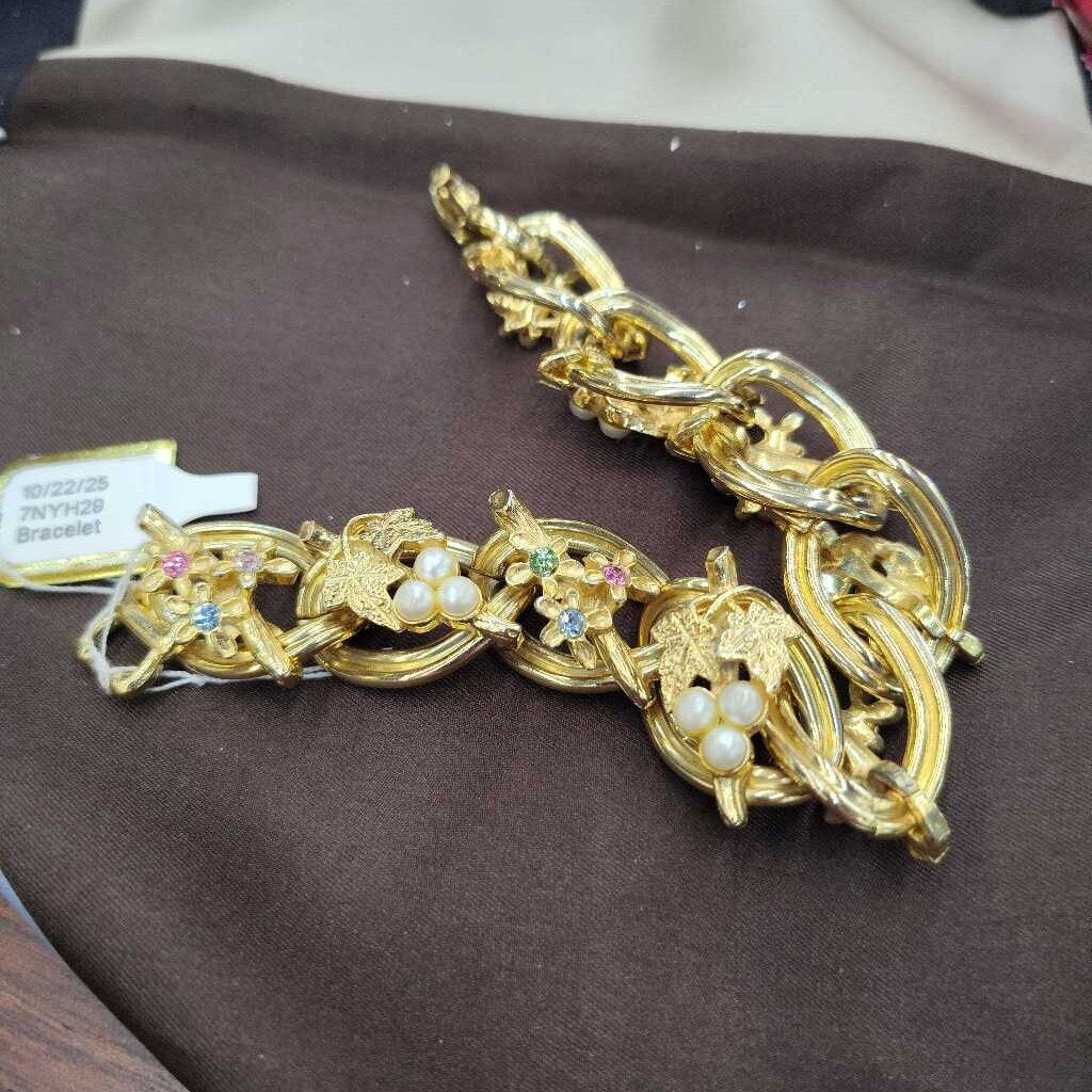 No label Bracelet 7" Goldtone Multi Blue