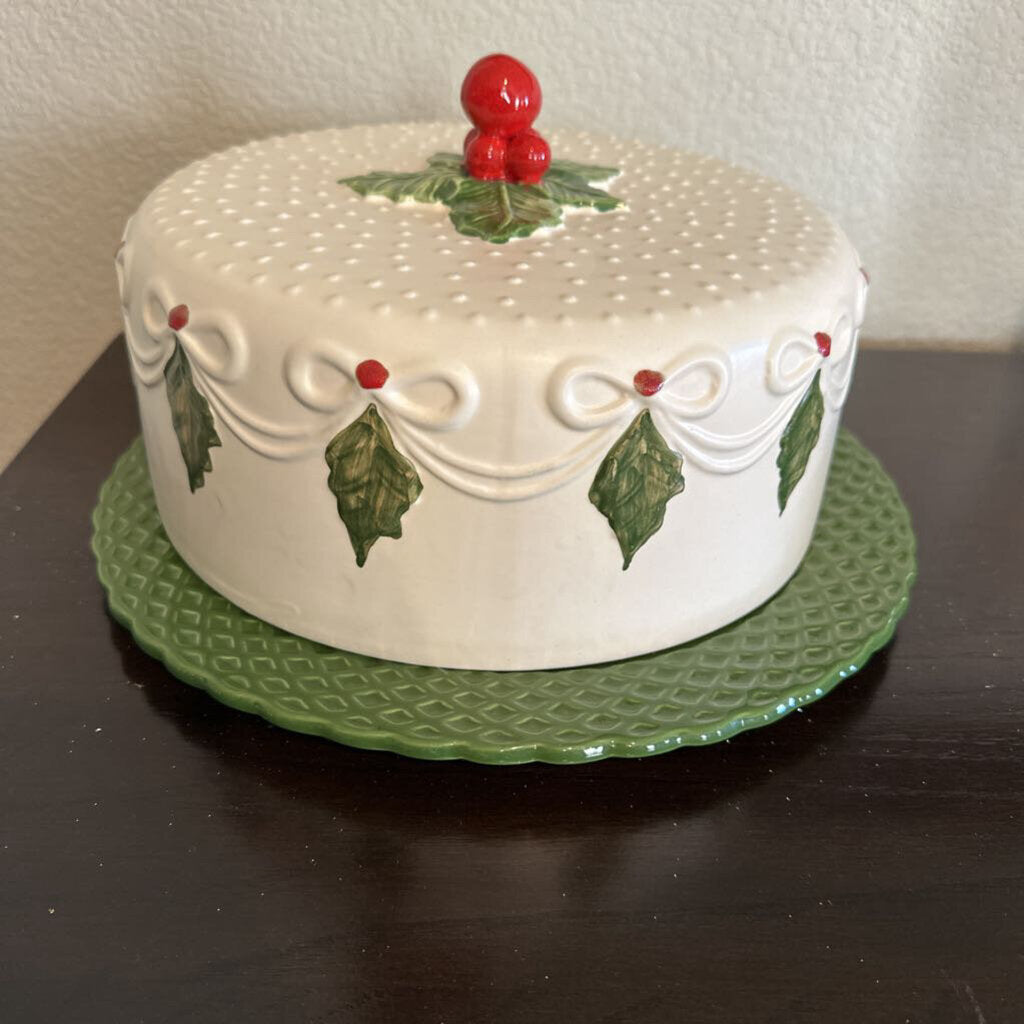 No label Cake plate/cover 12.5"d x 7"h White multi