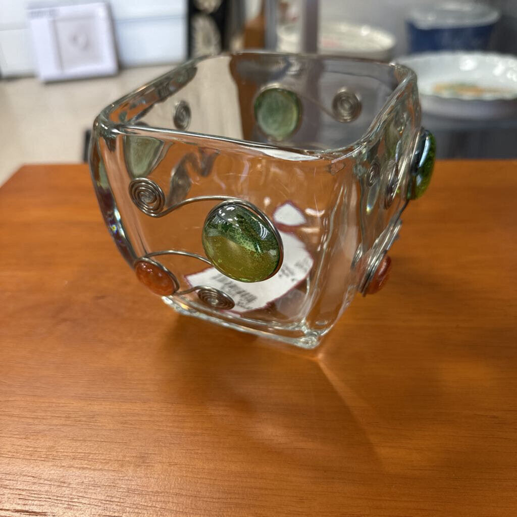 No label Candy Dish 4" sq. , 4" d Clear Multi