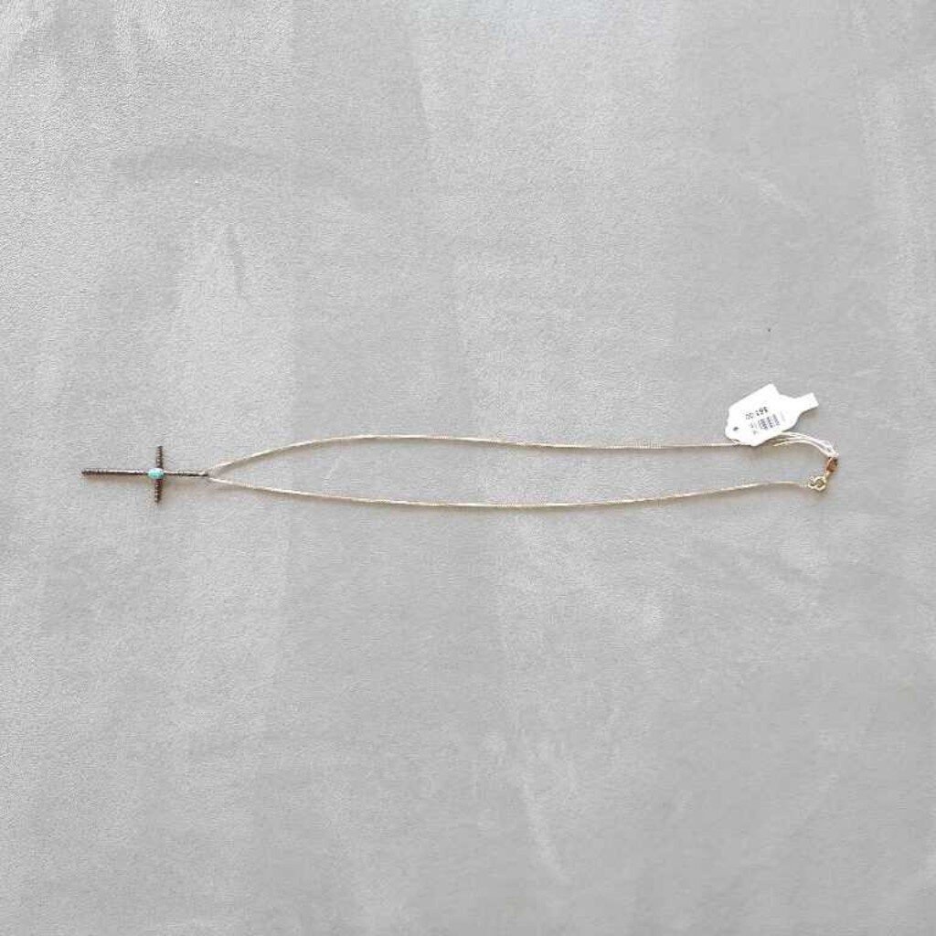 No label Cross Necklace 18" Sterling Turquoise