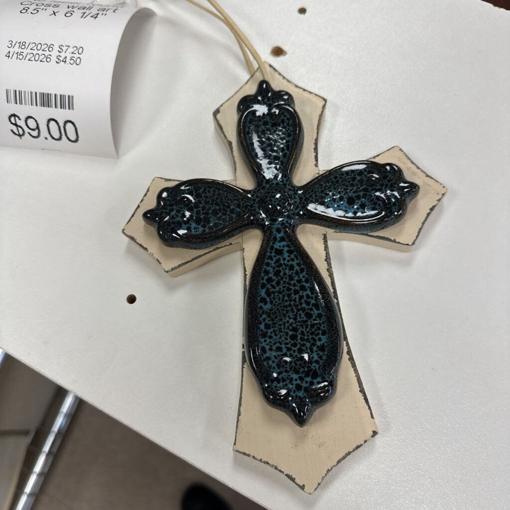 No label found Cross wall art 8.5" x 6 1/4" Cream/black/blue