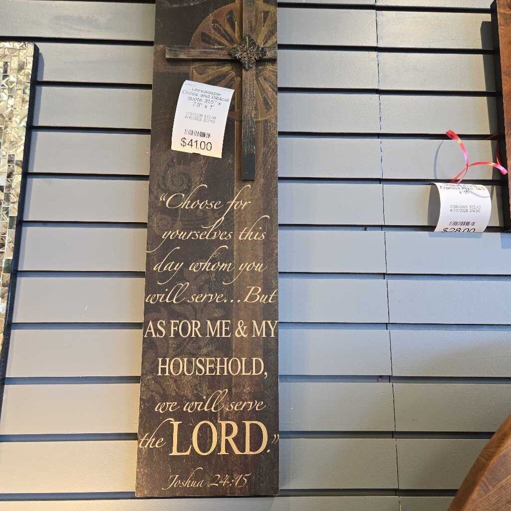 Cross at the top, Joshua 24:15 bible verse. Light weight.