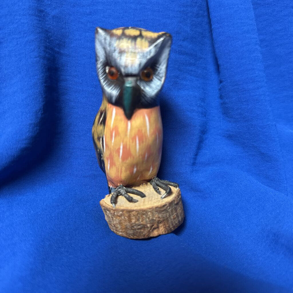 "Adams" Carved owl 4"h 2"w 2"d multi
