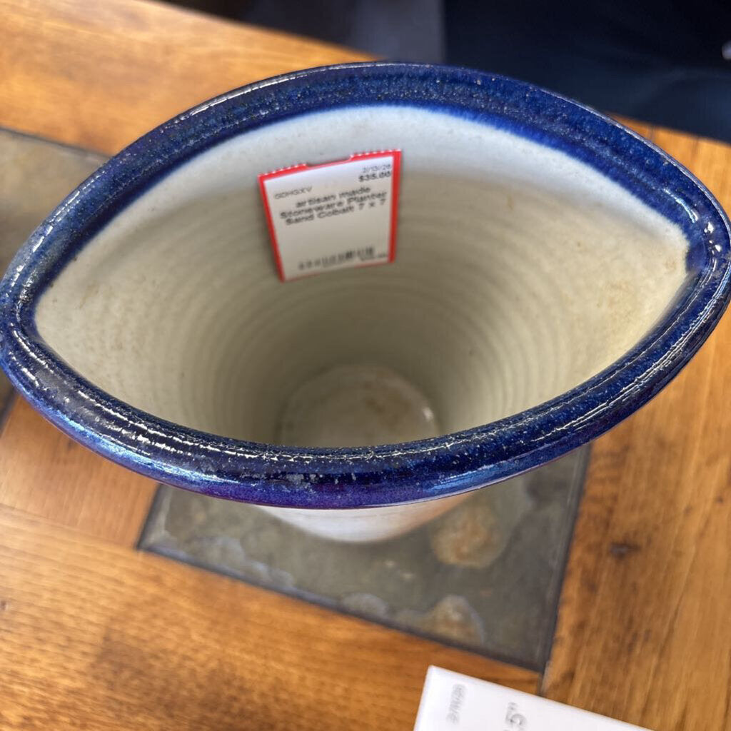 artisan made Stoneware Planter 7 x 7 Sand Cobalt