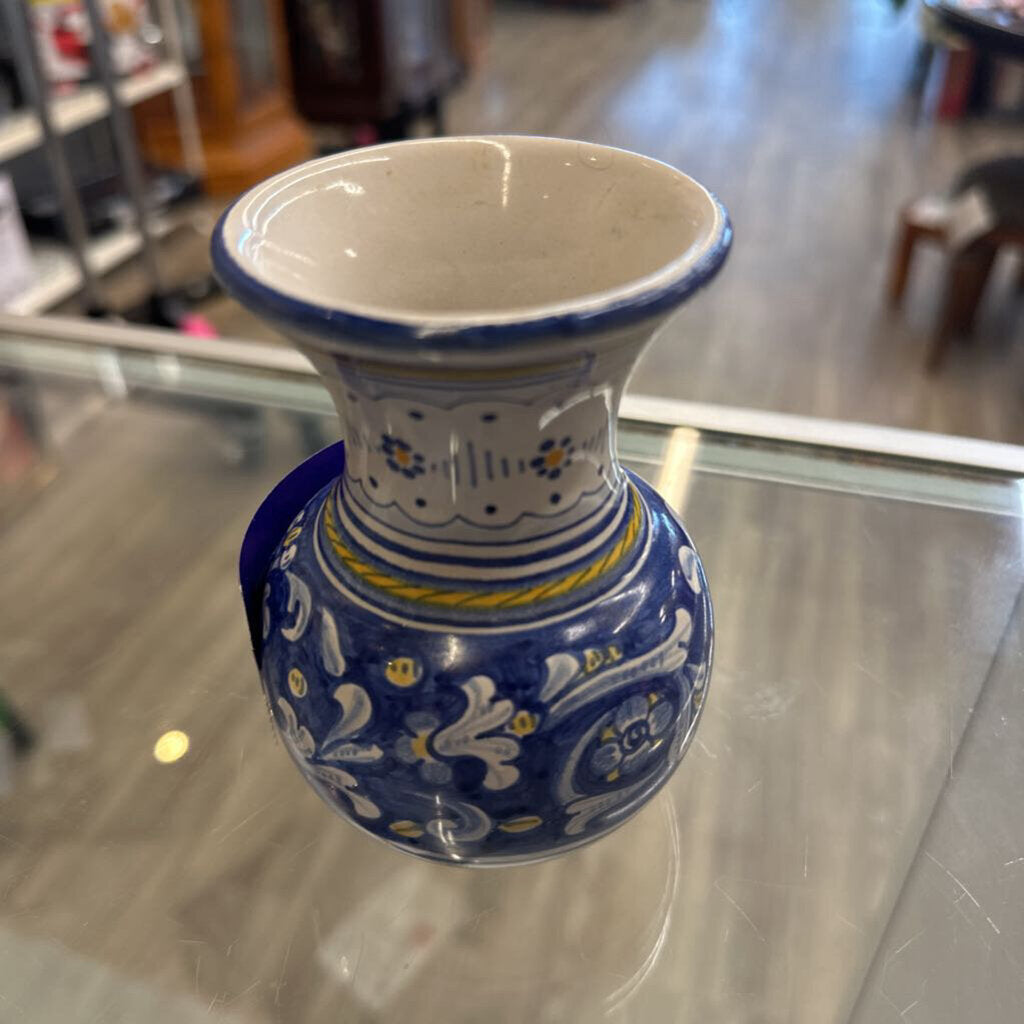 Handmade Talavera ceramic vase with a blue and white floral design. Made in Italy.