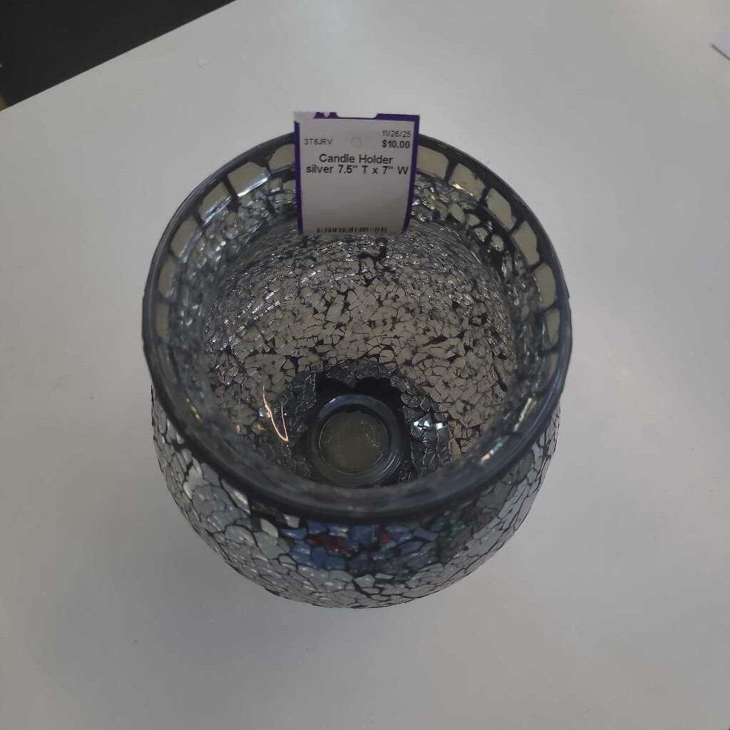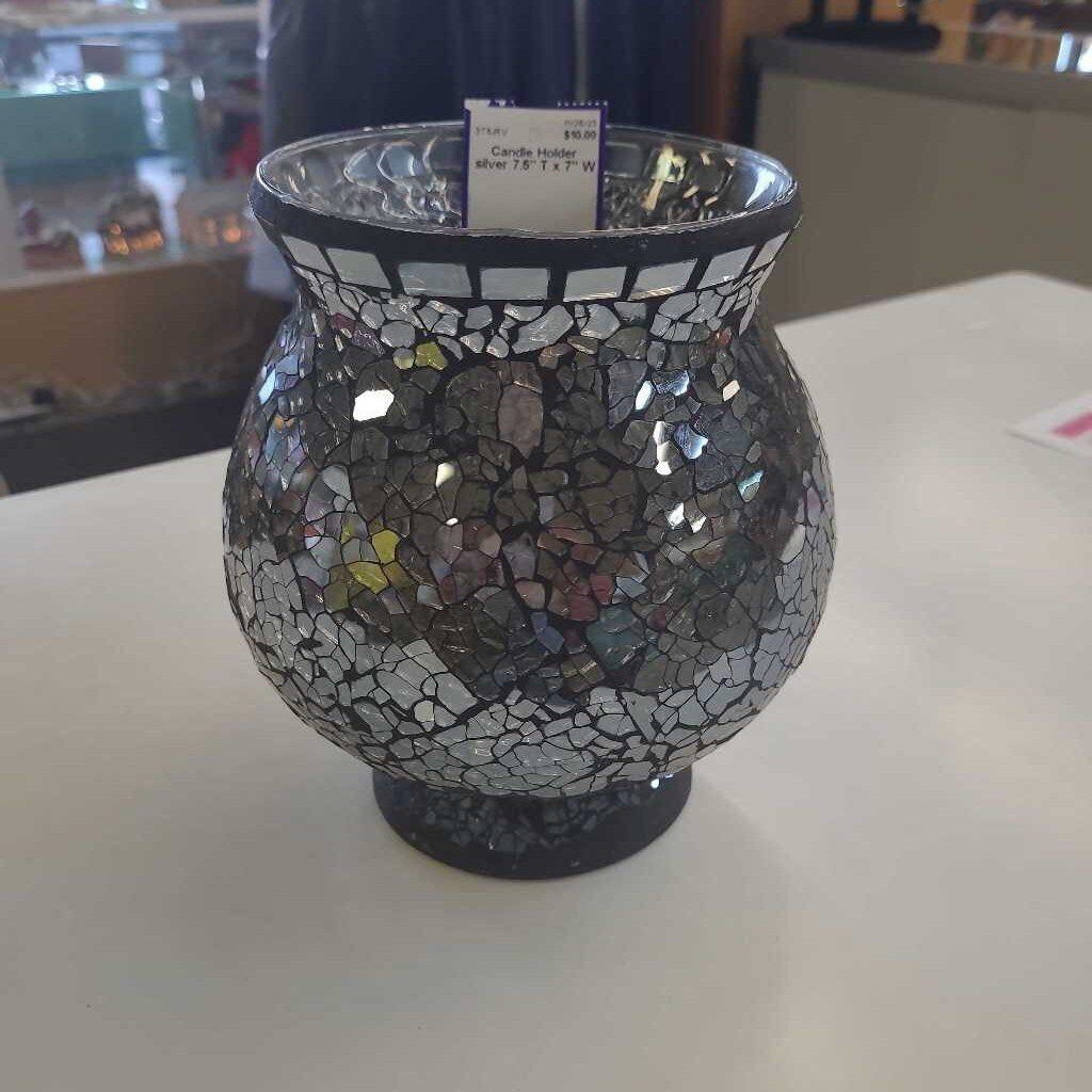 Candle Holder 7.5" T x 7" W silver