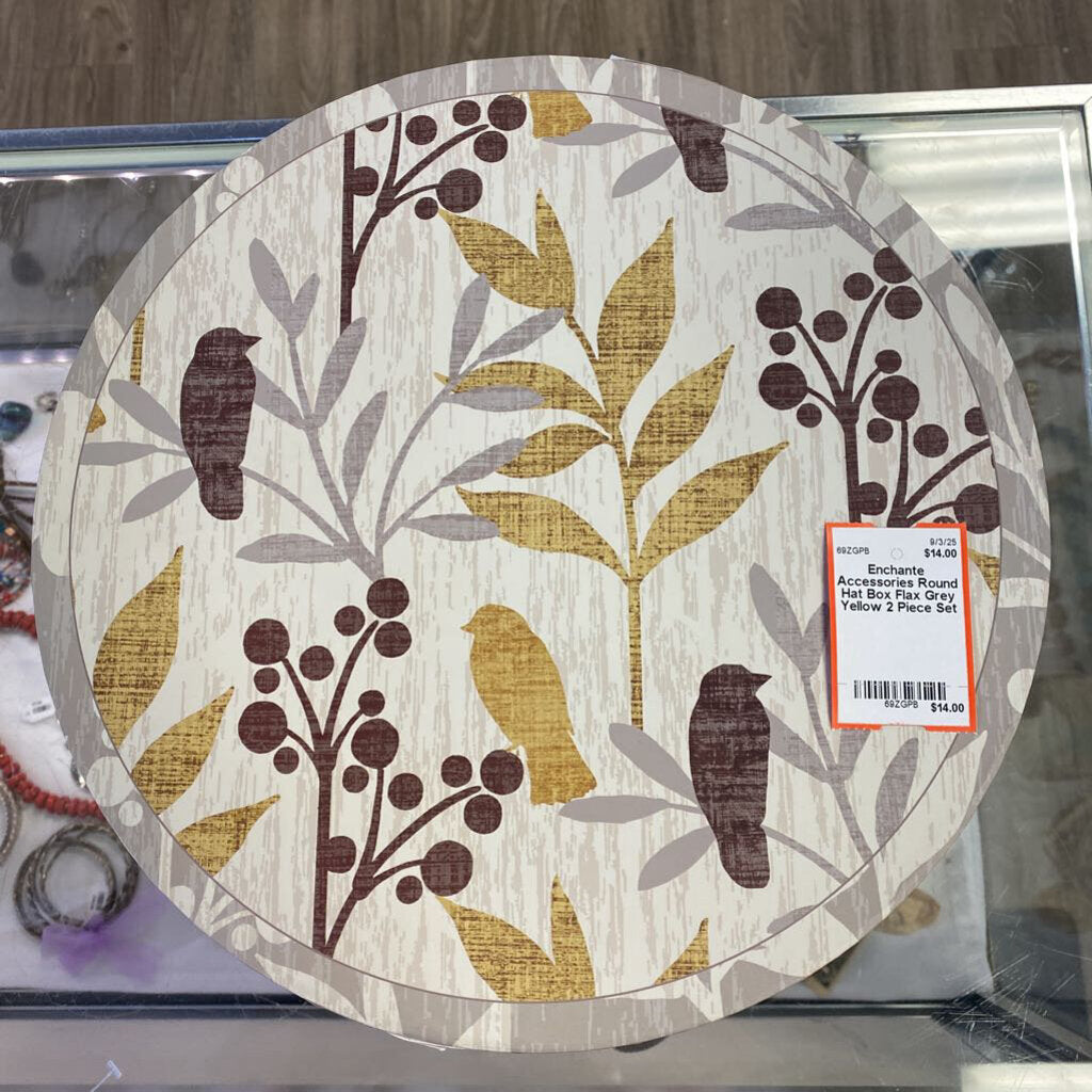 Enchante Accessories Round Hat Box 2 Piece Set Flax Grey Yellow