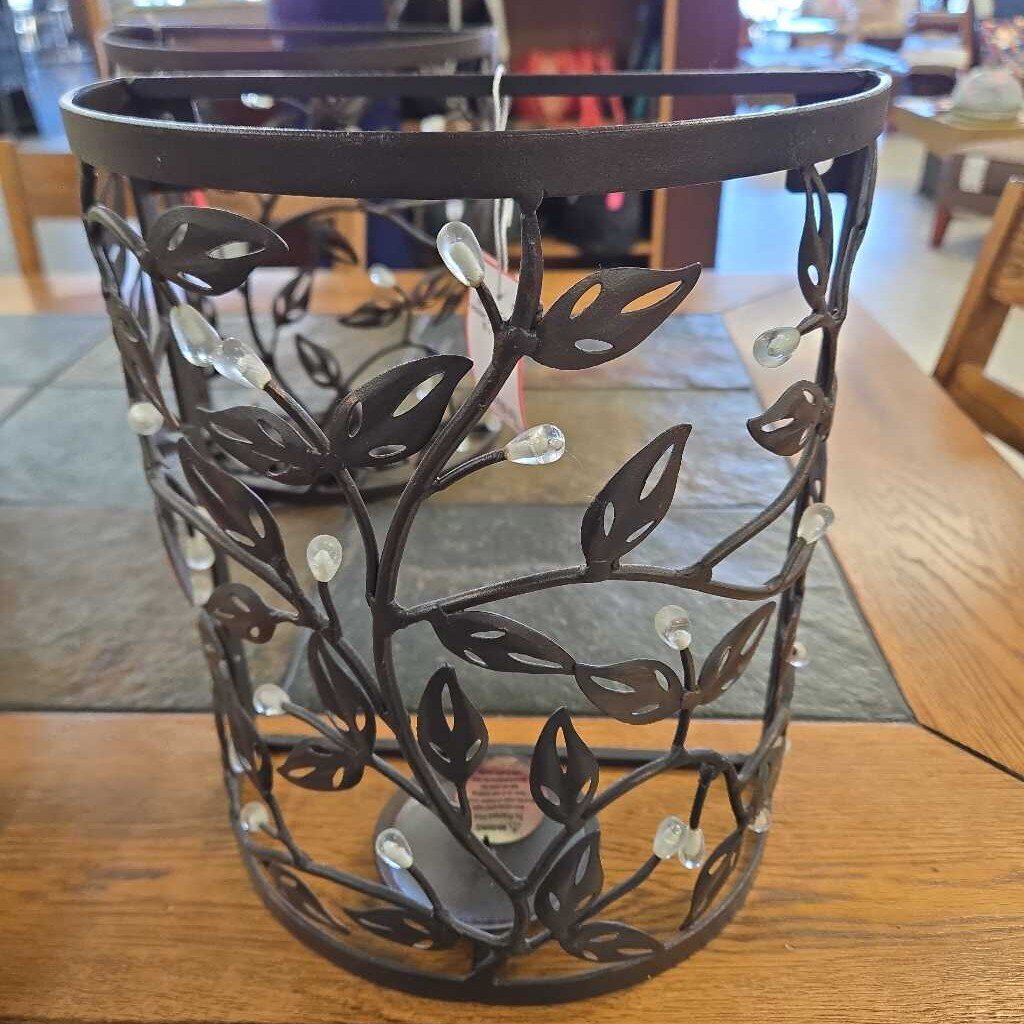 Metal half circle candle holder with clear bead accents. Can be hung on a wall.