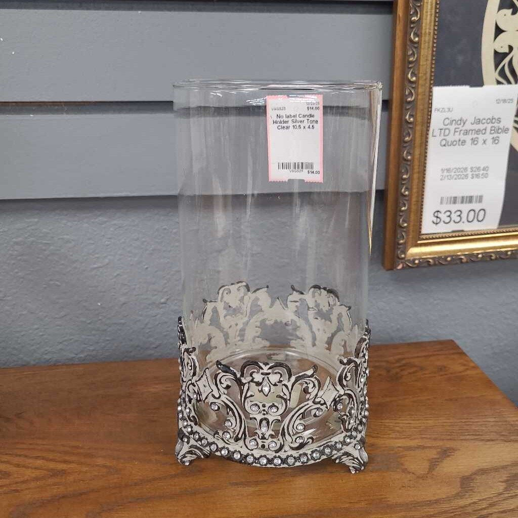No label Candle Holder 10.5 x 4.5 Silver Tone Clear