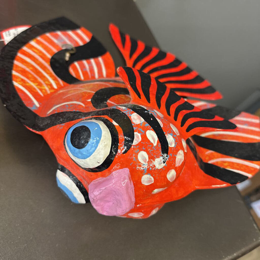 Paper Mache gold fish home décor, can be hung on the wall.