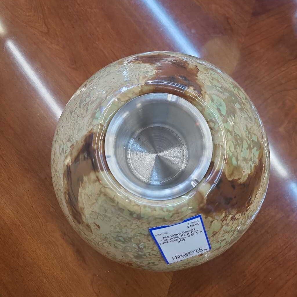 No label found Ceramic Fire Pot 8.5"T x 9"D rust and tan
