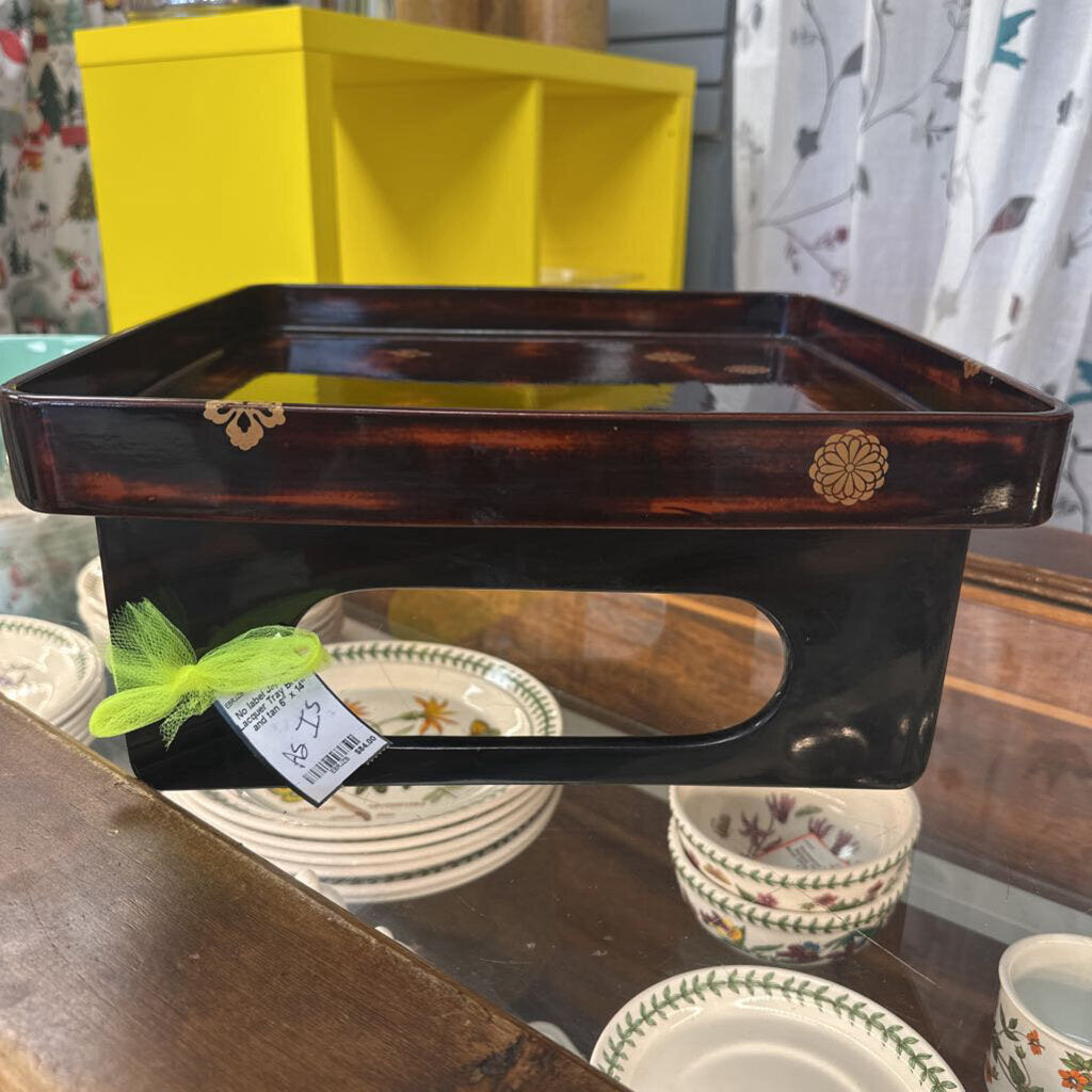 No label Japanese Lacquer Tray 6" x 14" Brown and tan