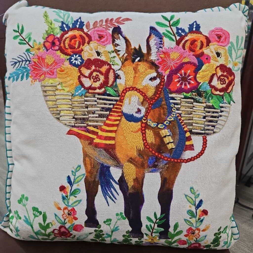 Pier1 Donkey Embroidered Pillow 16'x16' Multi