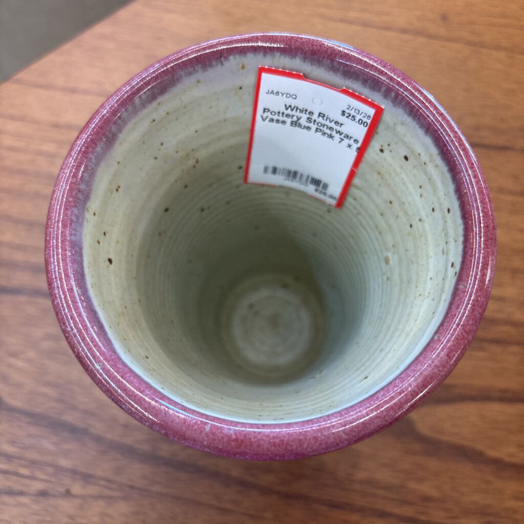 White River Pottery Stoneware Vase 7 x 5 Blue Pink
