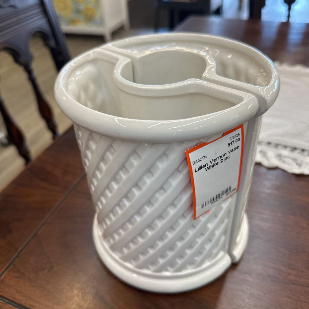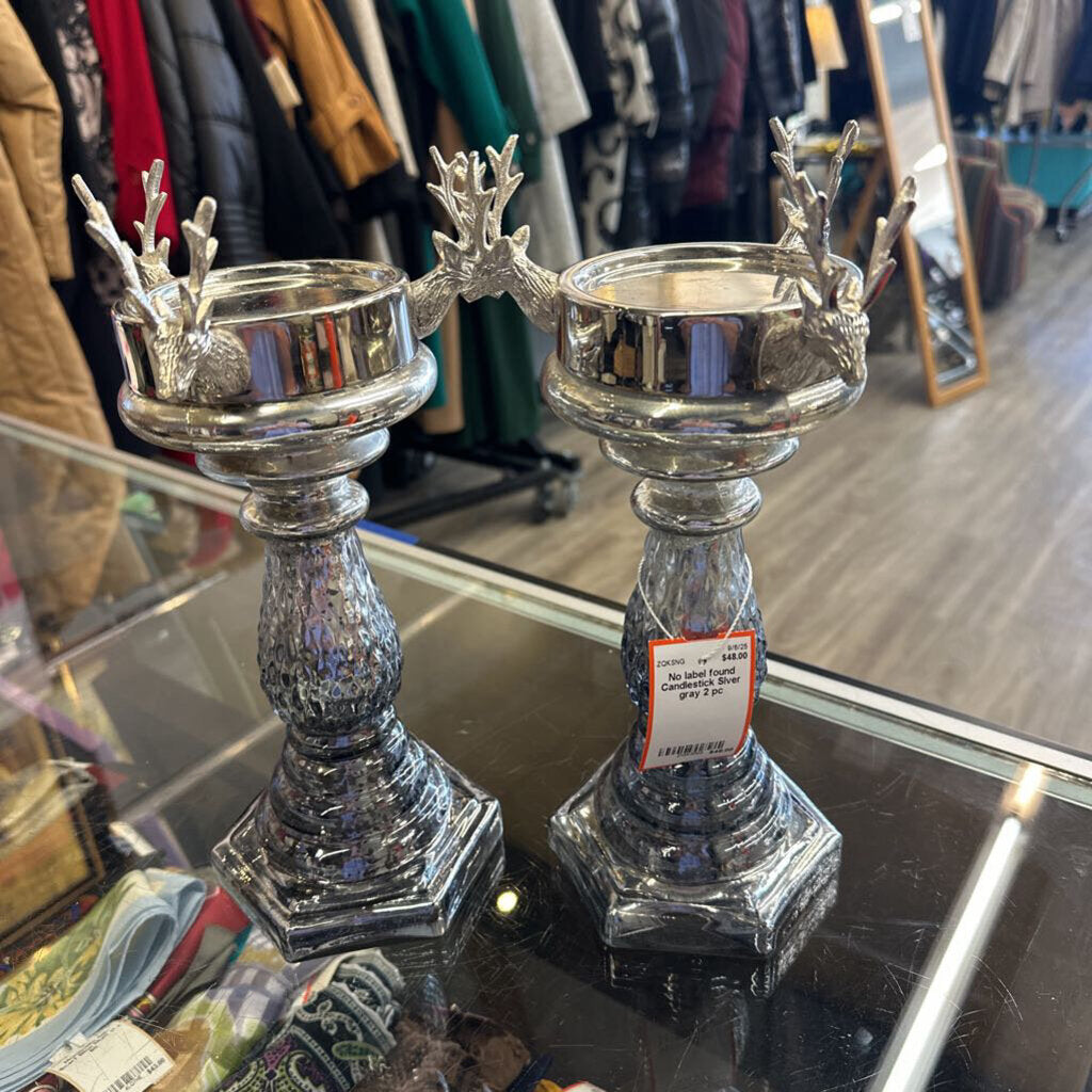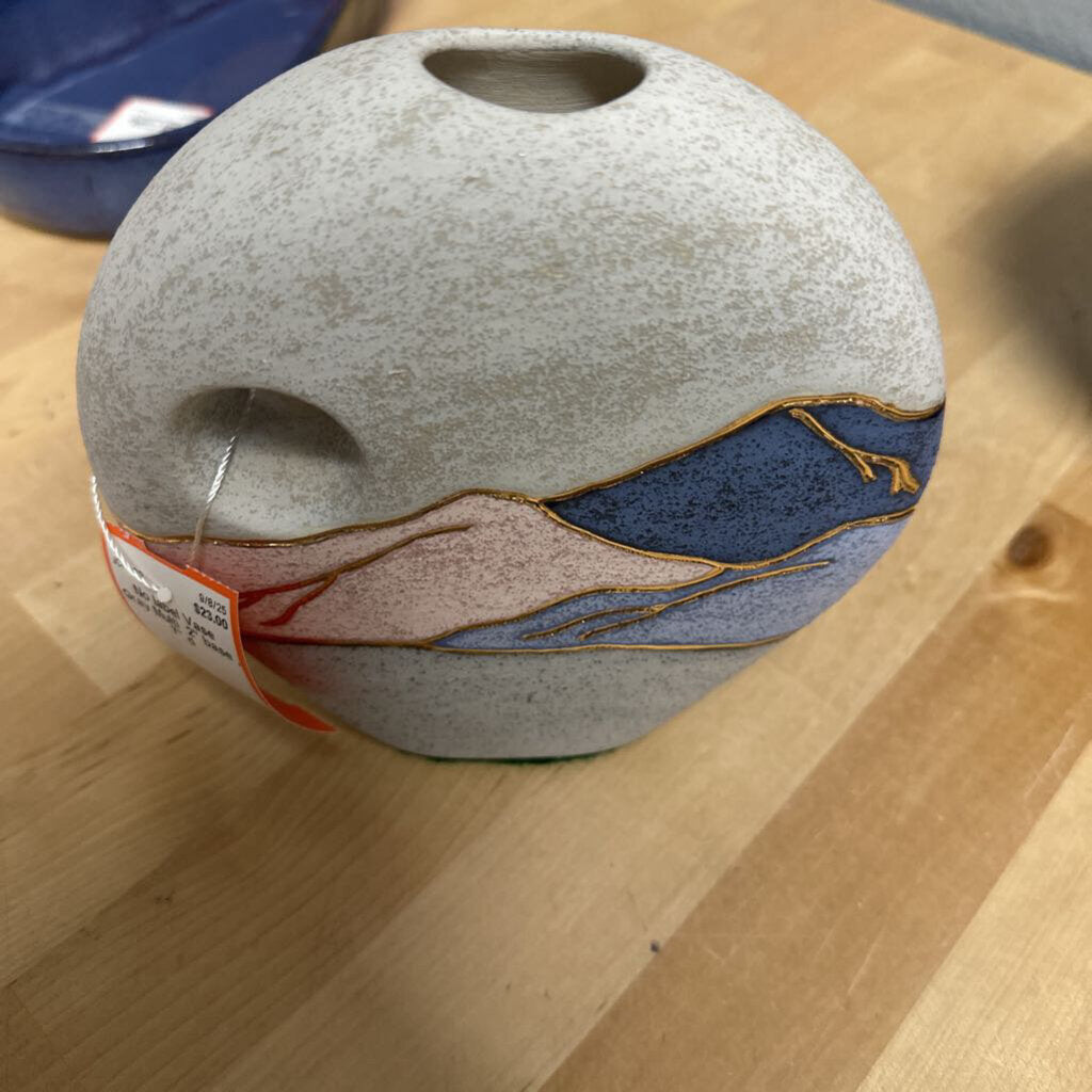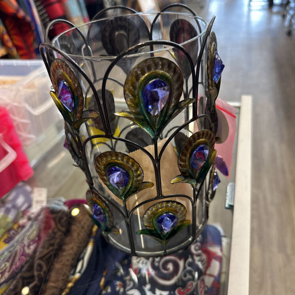 No label found Candle holder/vase 8 3/4" H x 4 3/4" D Clear gold purple