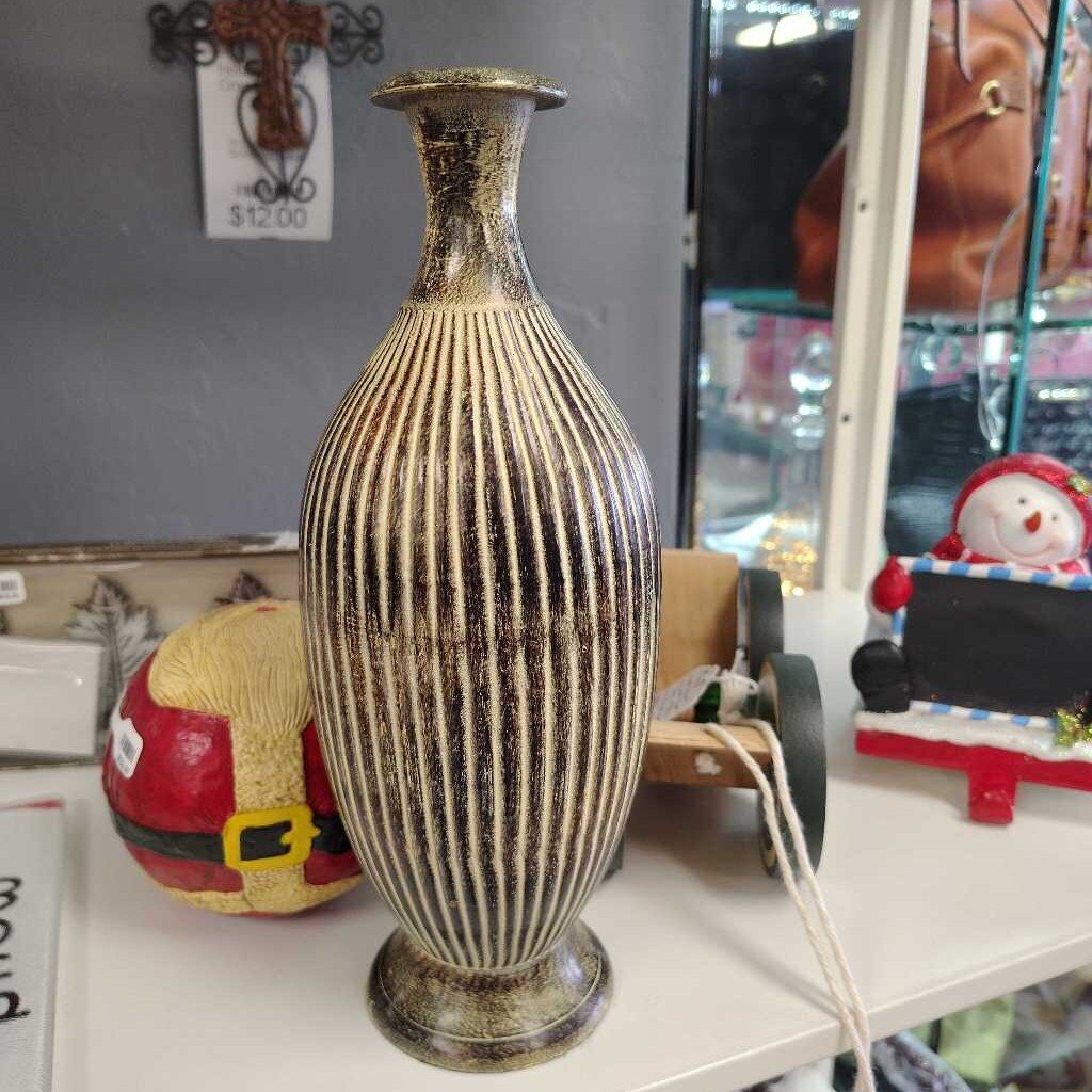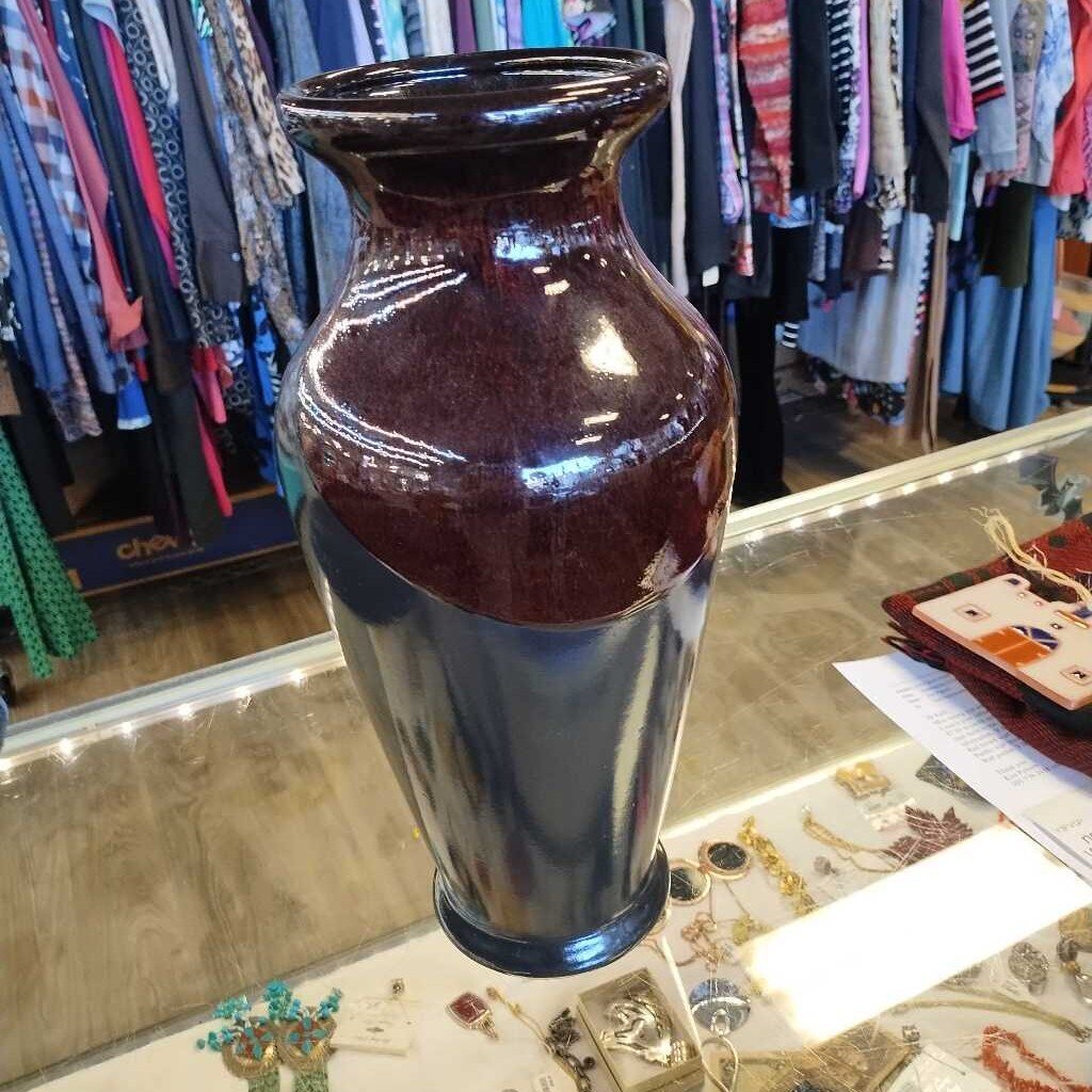 Hosley TM Potteries Ceramic Vase 15 x 7 Burgundy Charcoal