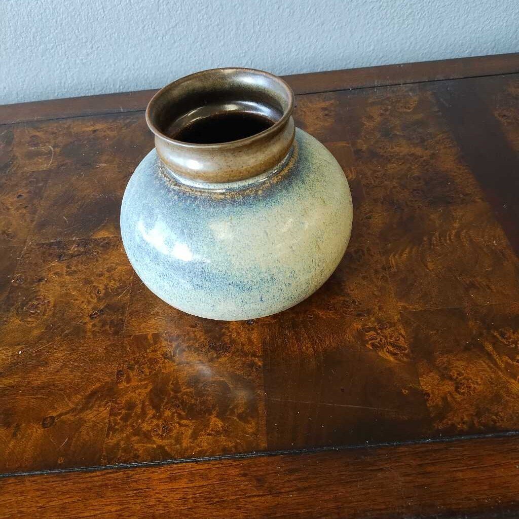 artisan made Ceramic Vase 6 x 6 Brown Blue