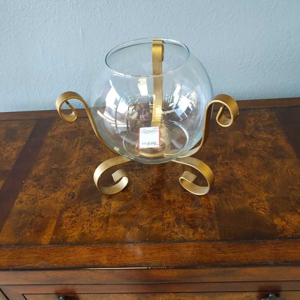 No label Glass Candle Holder 11 x 11 Gold Tone