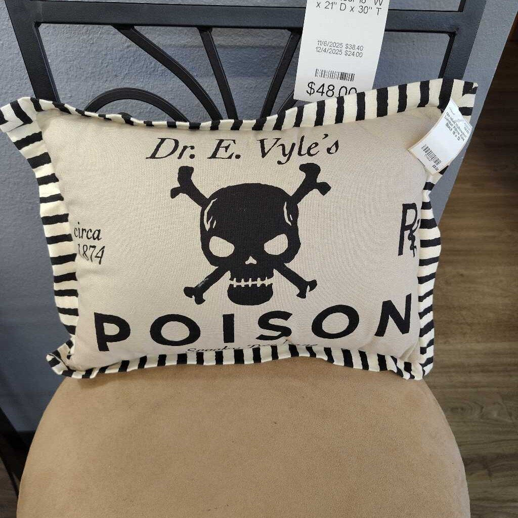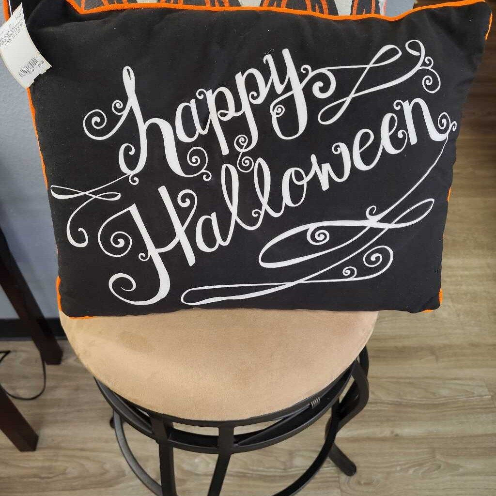 No label Halloween Lumbar Pillow 16 x 12 Flax Black