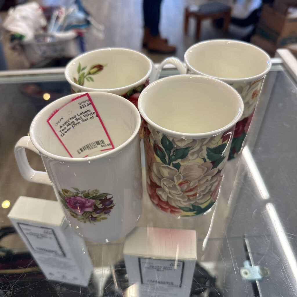 Assorted Labels Tea Mug Set Set of 4 White Green Oink