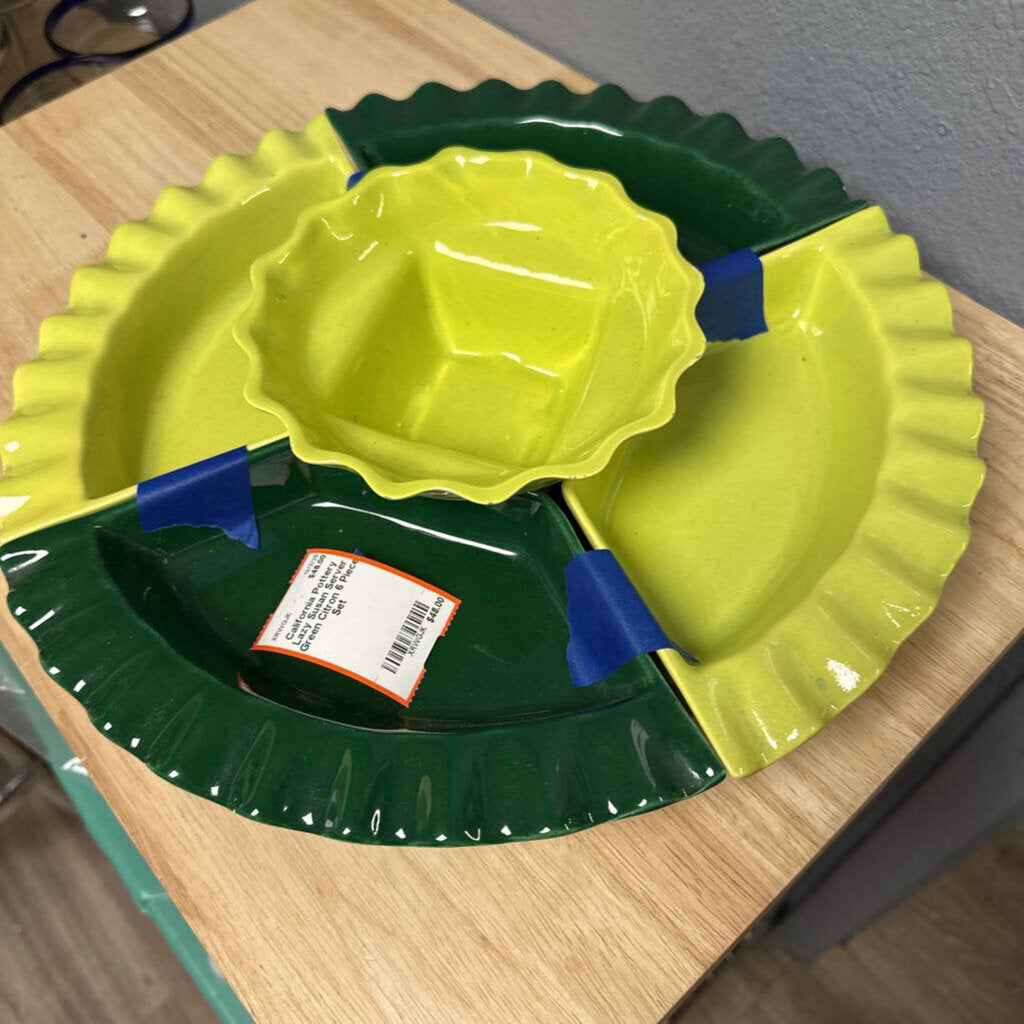 California Pottery Lazy Susan Server 6 Piece Set Green Citron