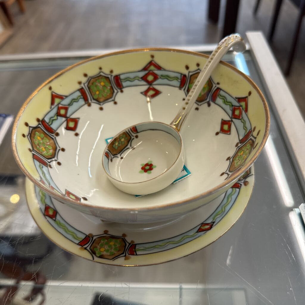 Nippon ceramic porcelain bow, saucer, and spoon set.