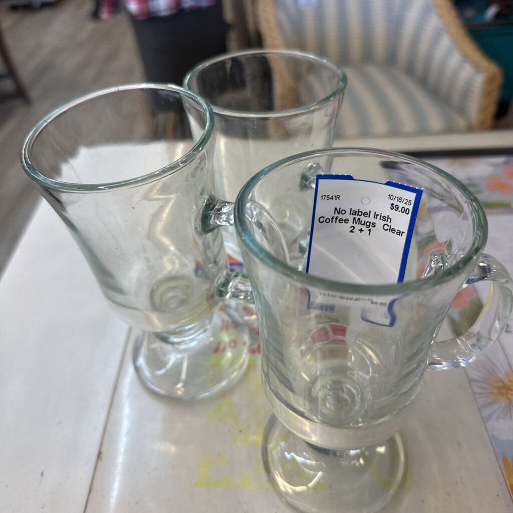Irish coffee glass stemmed mugs with handles. 2 + 1 set.