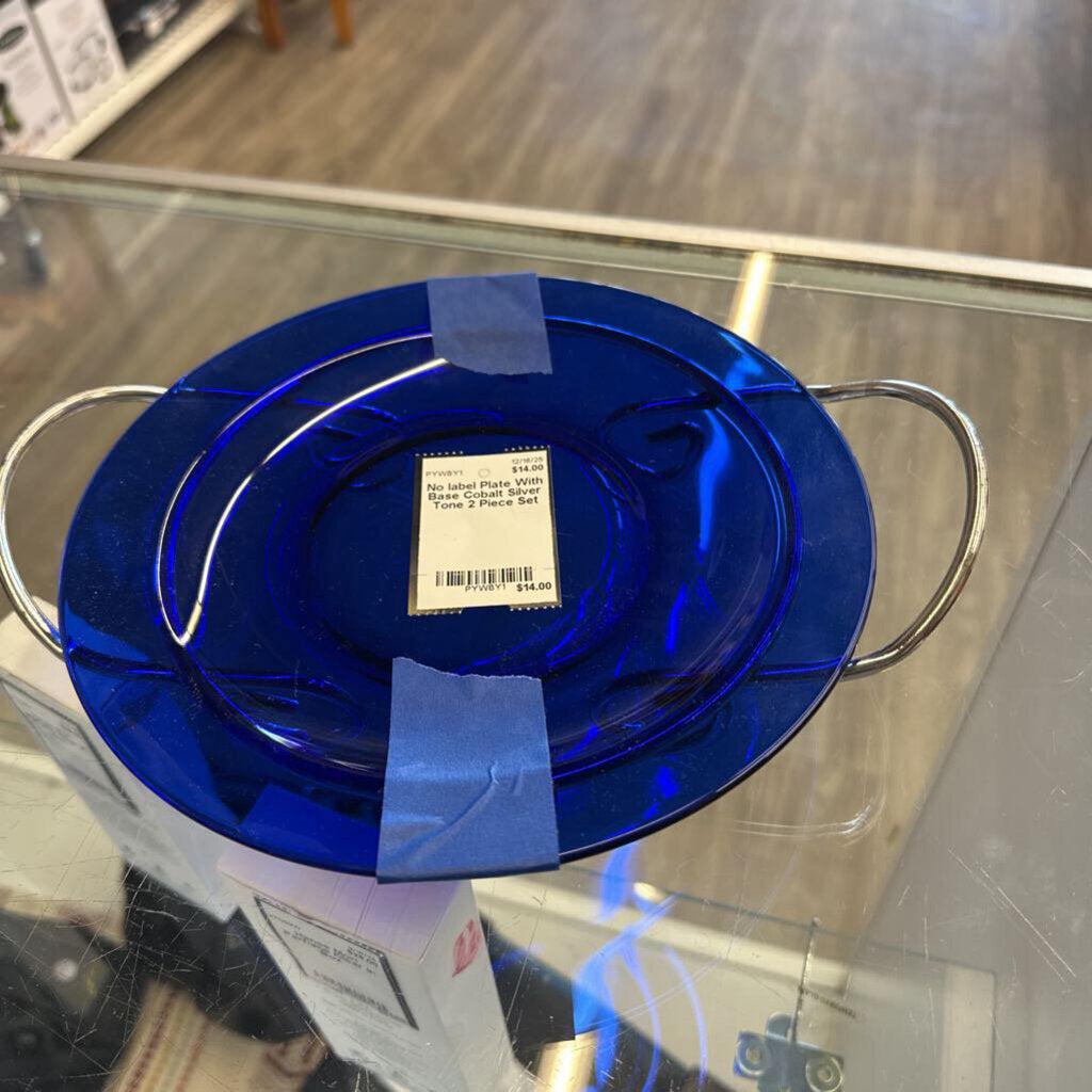 No label Plate With Base 2 Piece Set Cobalt Silver Tone
