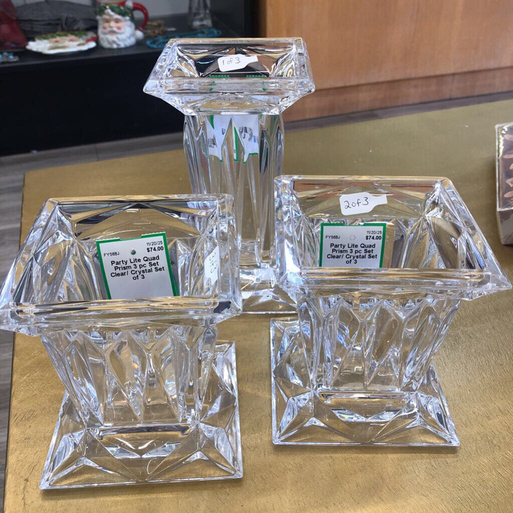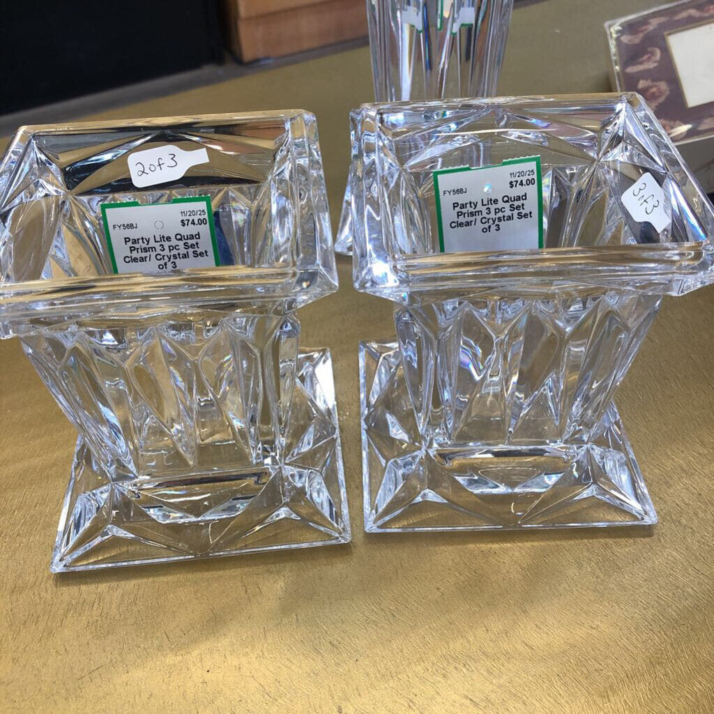 Party Lite Quad Prism 3 pc Set Set of 3 Clear/ Crystal