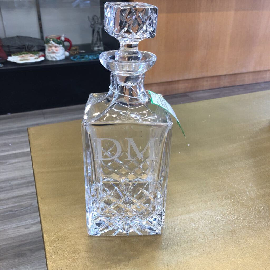 No info from consignor. Whiskey Decanter. Sticker Genuine Crystal, made in Poland. "DM", on front. Single item, no other pieces. Beautiful!