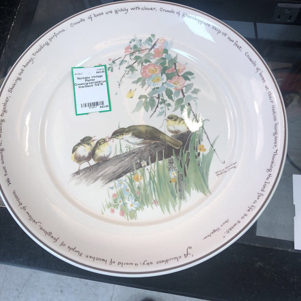 Noritake Vintage Platter 11.5"R Cream/green/pink/yellow/black