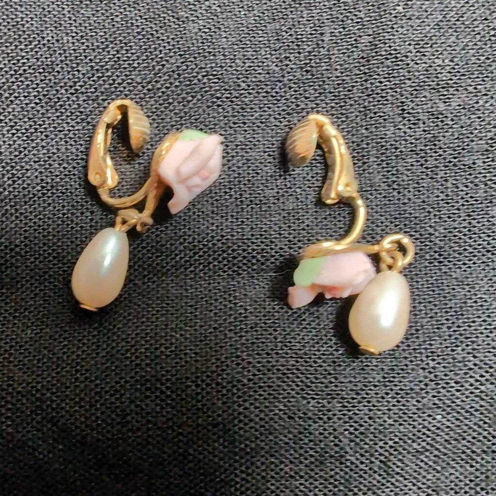 Clip Earrings Goldtone & Pink