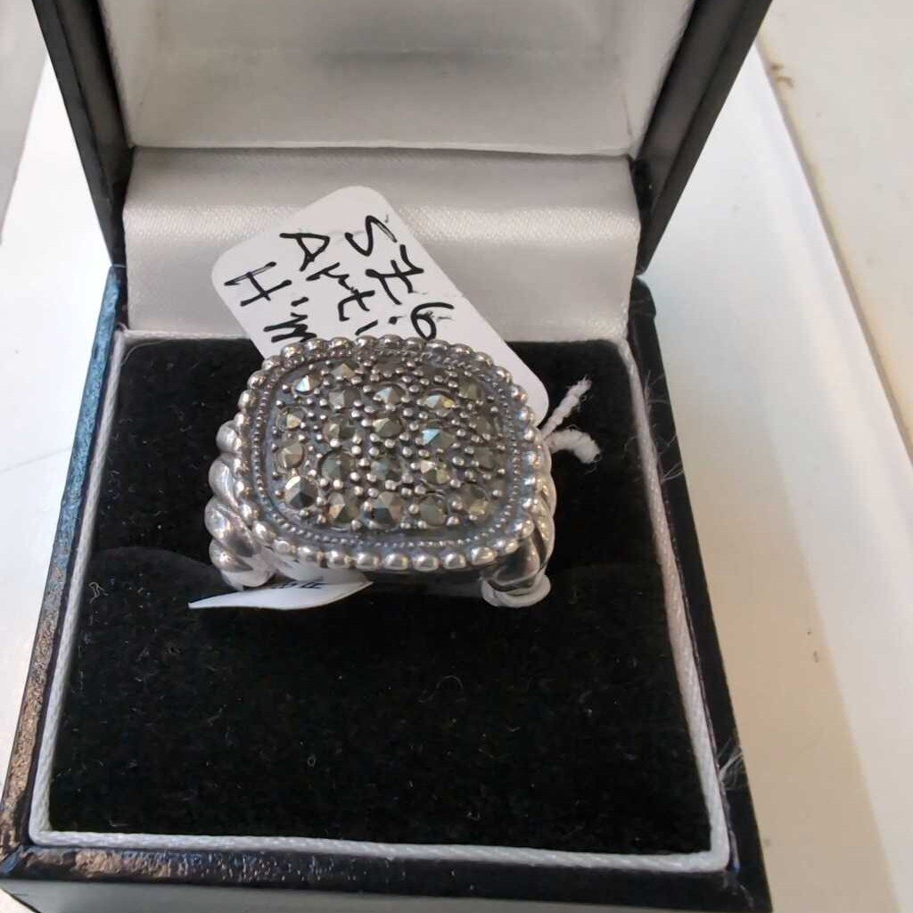 Vintage sterling silver and beaded marquisite ring by artist H'MRK.
