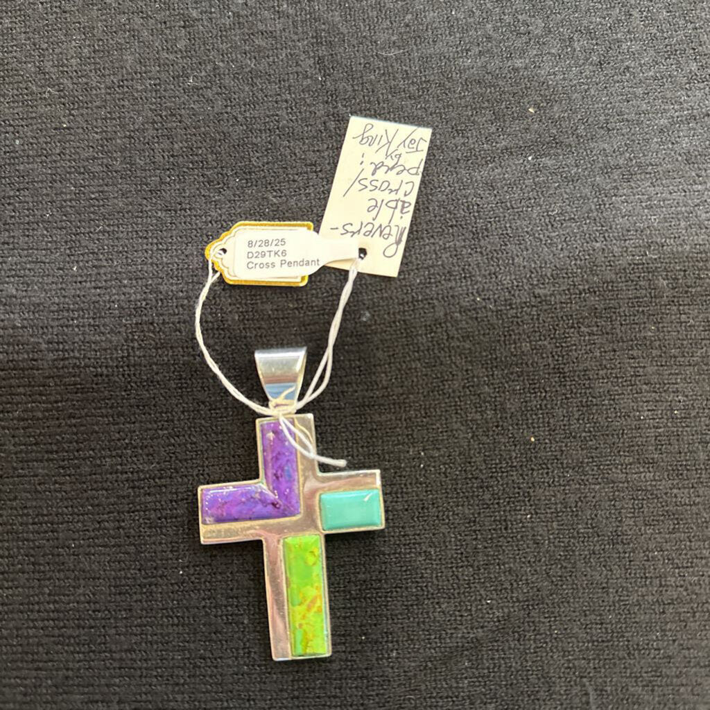 Jay King Cross Pendant 2.25 x 1.75 Sterling Silver Multi